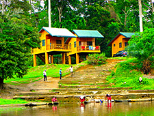 We vervoolgen onze tocht naar Ebogo, een 'ecologisch' dorp aan de rivier Nyong. We overnachten er in de ecochalets. We maken een prauwentocht op de rivier langs de mangrovebossen en gaan even aan land voor een wandeling tot aan de reuzachtige Kossipo boom. Terug aan de ecochalets bezoeken we een dorp en de velden van de Beti volkeren. Verschillende gewassen worden geteeld. De inwoners leggen ons uit hoe ze hun 'Vin de Palme' maken.